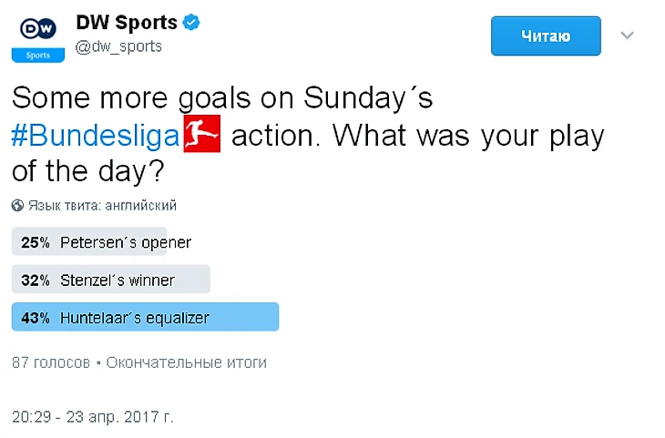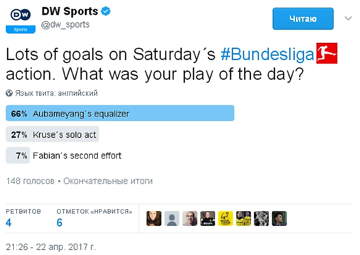 Много голов забито в субботу в Бундеслиге. Что было вашим моментом дня?
