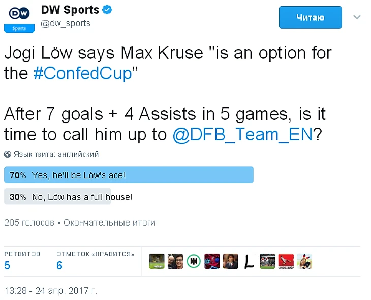 Лев сказал, что Макс Крузе «это вариант для Кубка Конфедераций». После 7 голов и 4 голевых передач в 5 играх не пришло ли время позвать его в сборную Германии?