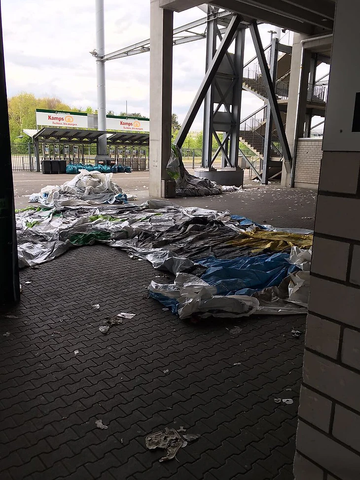Вчера в Мёнхенгладбахе в рамках полуфинала Кубка Германии встречались местная "Боруссия" и франкфуртский "Айнтрахт". Фанаты "жеребят" из ультрас-группы "Sottocultura" как обычно за несколько часов до матча пришли на стадион "Боруссия-Парк", чтобы спокойно подготовиться к вечерней игре. Каково же было их удивление и шок, когда они увидели, что по подтрибунному помещению стадиона разбросан их перфоманс, который они хотели презентовать на полуфинальном матче.
