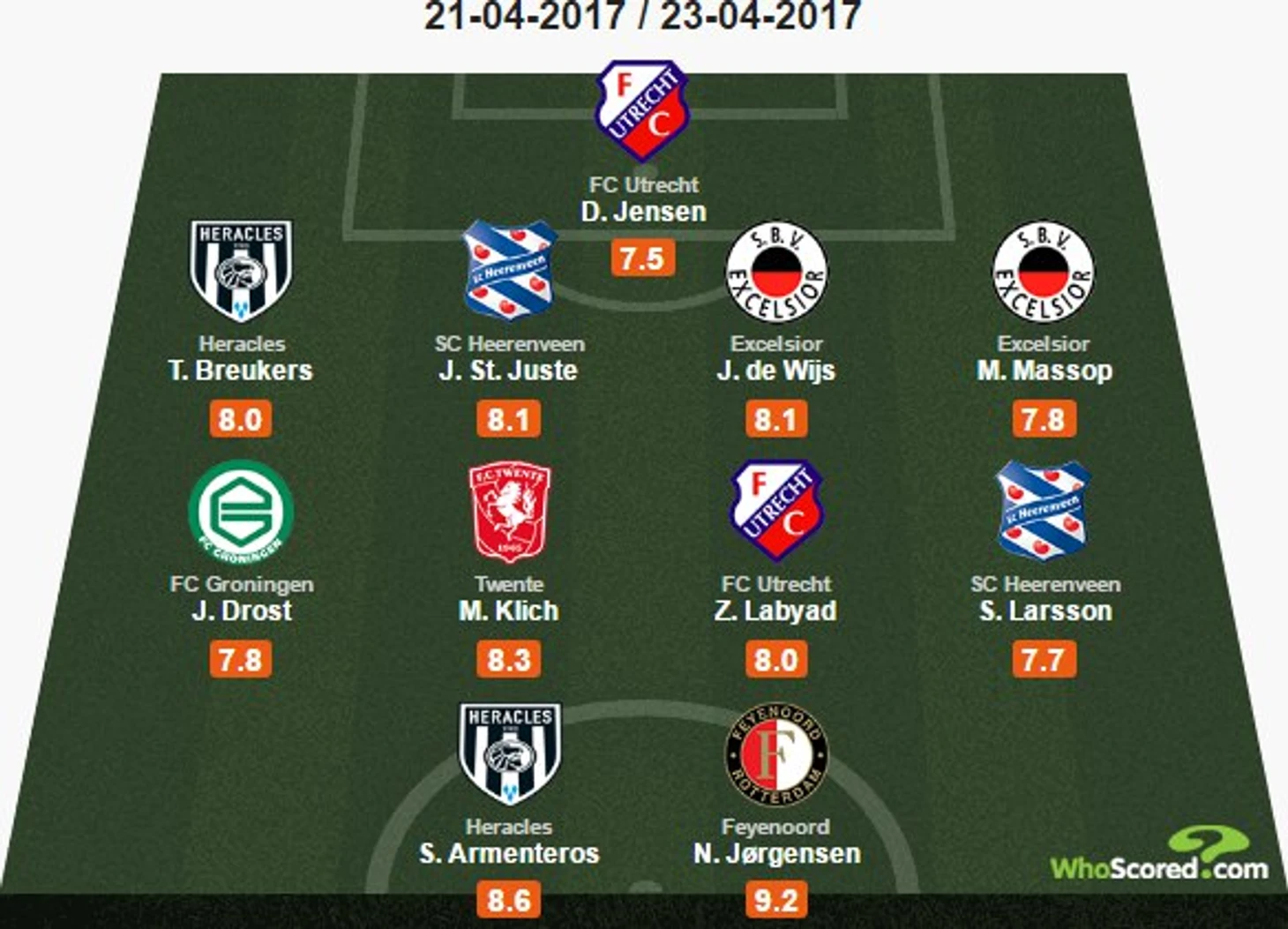 - В споре бомбардиров Николай Йоргенсен вновь ушёл в отрыв: 21 гол. Сзади сразу трое: Рикки ван Вольфсвинкель, Реза Гучанежад и Самюэль Арментерос. У всех по 18 мячей.