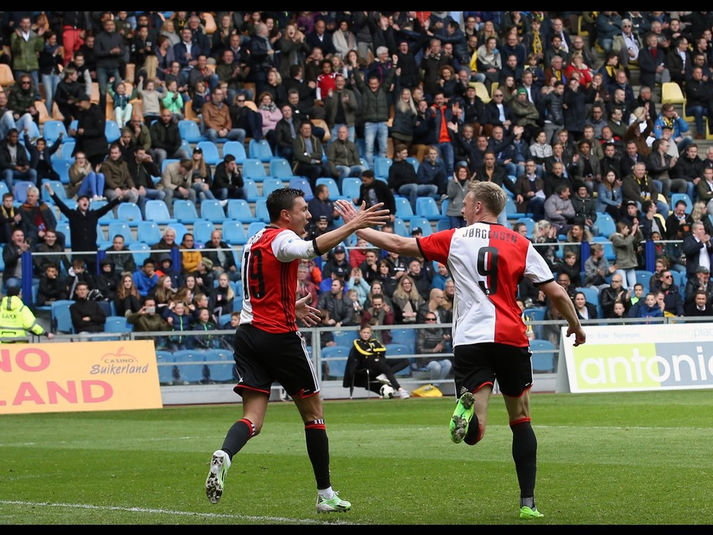Гости с первых минут завладели инициативой, чётко обозначив свои намерения. В последнее время роттердамцы частенько проваливали стартовые минуты, но ван Бронкхорсту удалось справиться с этим и «Фейе» сразу обрушил мощь своих атак на оборону «Витесса». Не прошло и десяти минут, как гости повели в счёте: это Николай Йоргенсен удачно сыграл на добивании, доведя свой бомбардирский счёт до 20 голов. Гости не сбавляли темп и к 30-й минуте вели уже в два мяча: всё тот же Йоргенсен использовал отличную передачу Торнстры и головой отправил второй мяч в сетку ворот Элоя Роома. «Витесс» смотрелся крайне невыразительно, как-то «варёно», было ощущение, что мысли игроков далеко от зелёного газона стадиона «Гелередом». Без ван Вольфсвинкеля совершенно не клеилась игра в атаке, а защита не успевала за быстрыми перемещениями игроков «Фейе». До перерыва Бергхёйс упустил ещё два стопроцентных момента, так что хозяева должны были радоваться, что получили всего две пробоины в первой половине.