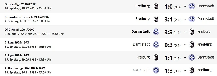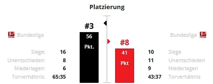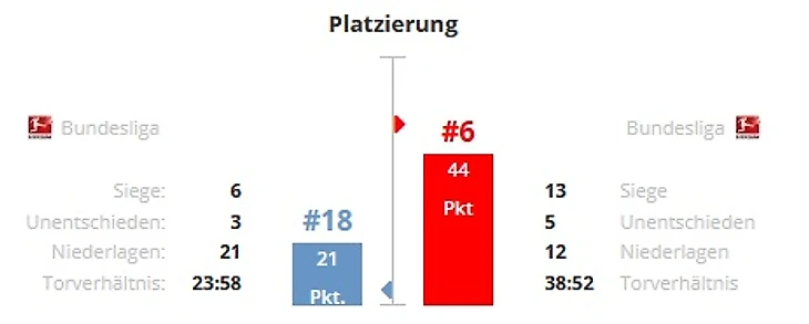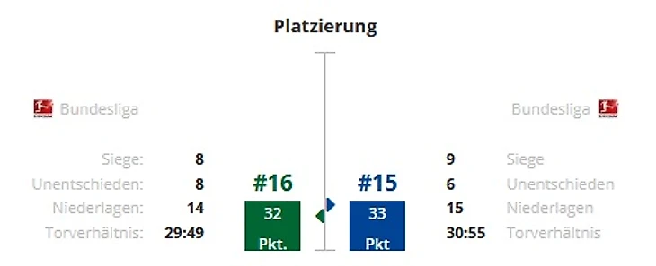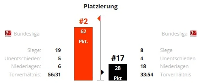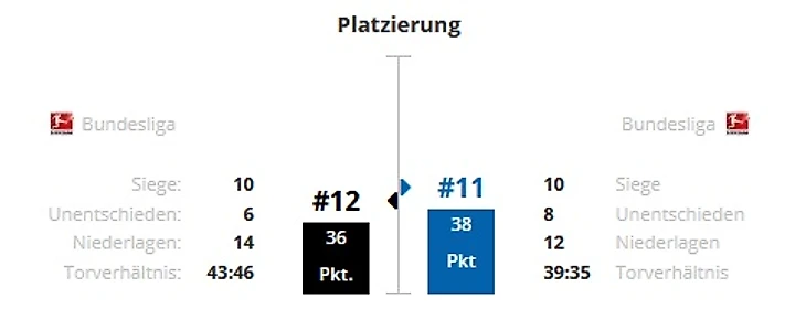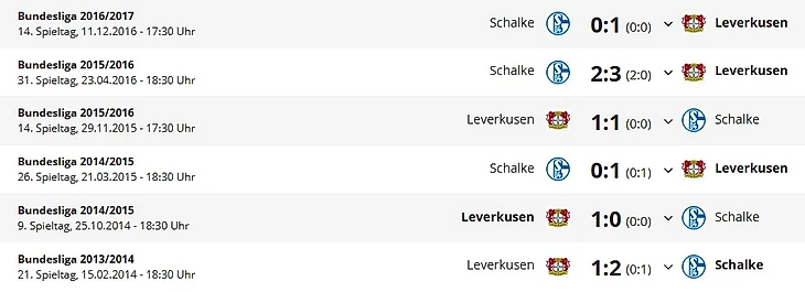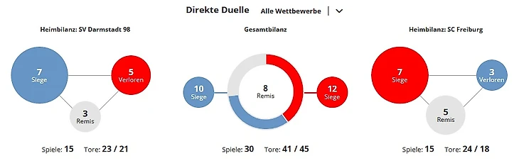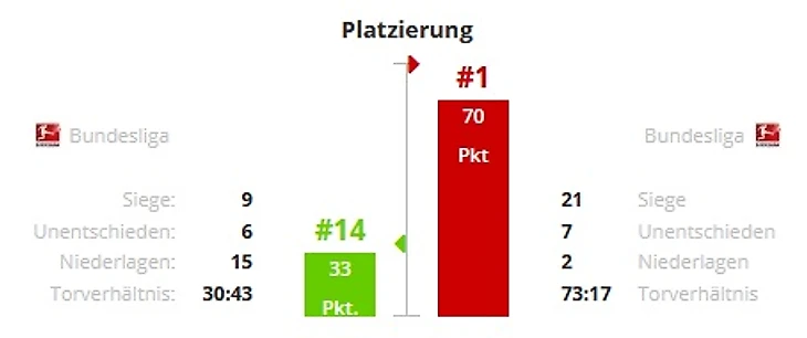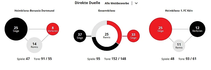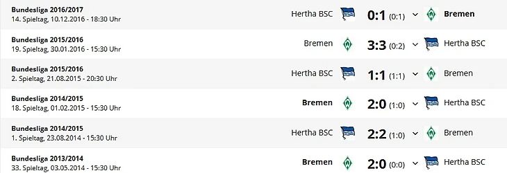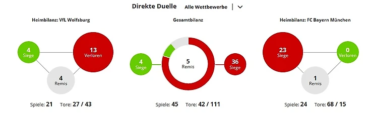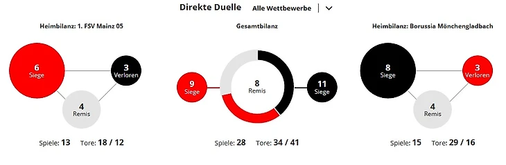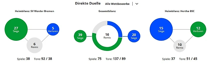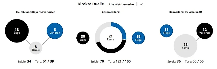 *Gesamtbilanz - общий баланс, heimbilanz - баланс игр дома, remis - ничьи, siege - победы, tore - голы