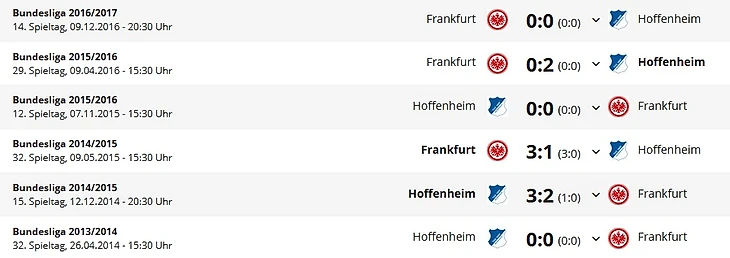 На своем поле "Хоффенхайм" проиграл "Айнтрахту" всего один раз (в 2012, 0:4). Интересно, что благодаря той победу франкфуртцы имеют положительную разницу мячей в гостевых матчах с "Хоффенхаймом" (8:7)