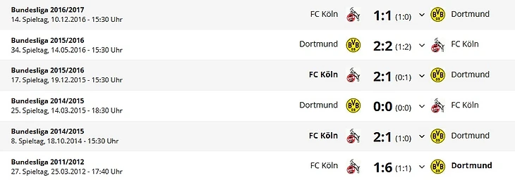 На коротком отрезке от "Баварии" до "Баварии" дортмундцы провели четыре игры. Команда Тухеля одержала две победы в чемпионате и дважды уступила в Лиге Чемпионов "Монако". Кубковый поединок с мюнхенцами складывался для "Боруссии" непросто, когда повторение недавнего разгрома 1:4 казалось неизебжным, дортмундцы смогли проявить свой знаменитый характер и переломить ход встречи, пробившись в финал турнира. "Боруссия" опять поедет в Берлин, и это главный итог недели для клуба. Сделать ее еще более приятной может победа над "Кельном", ведь "черно-желтые" продолжают борьбу за третье место с "Хоффенхаймом". "Козлы" в пяти предыдущих гостевых матчах набрали лишь одно очко, а последнюю победу в Дортмунде одержали в 1991 году.