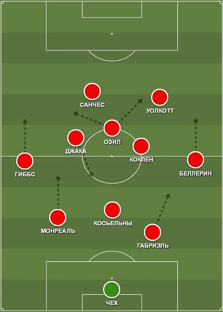 Арсен Венгер все еще находится в поиске игроков для новой схемы 3-4-3. Помимо сложного выбора футболистов, которые пока не заточены под ставшую вновь популярной тактическую модель, свои коррективы вносят и травмы. В этой связи изменений по сравнению с прошлым матчем хватало. В отличие от поединка чемпионата против «Мидлсбро», в центре атаки вышел Алексис Санчес, а Оливье Жиру остался на скамейке запасных, уступив свое место в составе Тео Уолкотту. Полностью обновилась пара латералей. Вместо Монреаля и Окслейда-Чемберлена на краях расположились Гиббс и Беллерин. К слову, Монреаль вышел на позиции третьего центрбека, отправив на скамейку Холдинга. Последним изменением стал выход Франсиса Коклена в пару к Граниту Джаке. Против «Мидлсбро» играл Аарон Рэмзи.