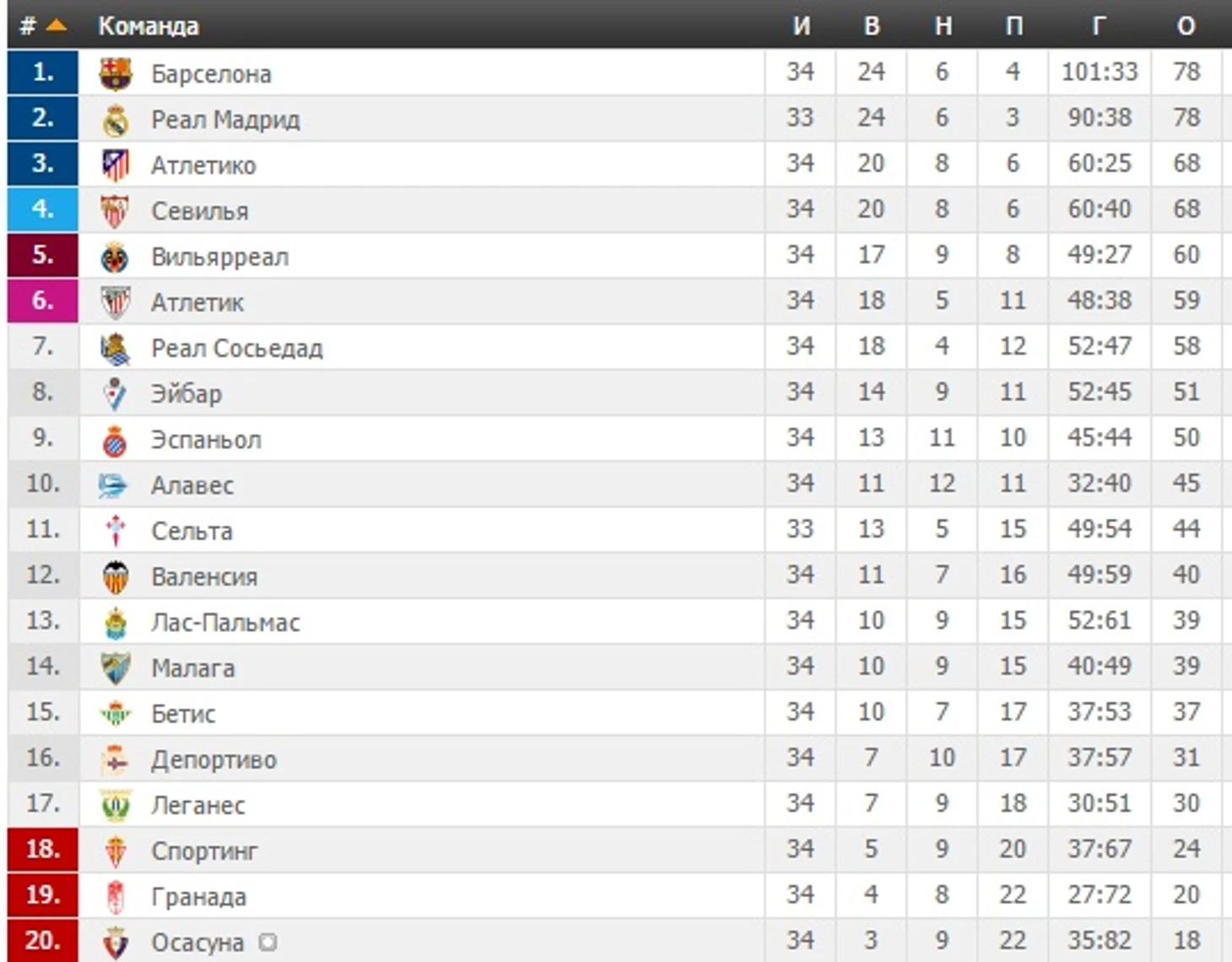 «Осасуна» вылетает в 7-й раз в биографии и впервые за 4 тура до конца. Их заходы на сезон после возвращения: 1935/36, 1953/54, 2016/17.
