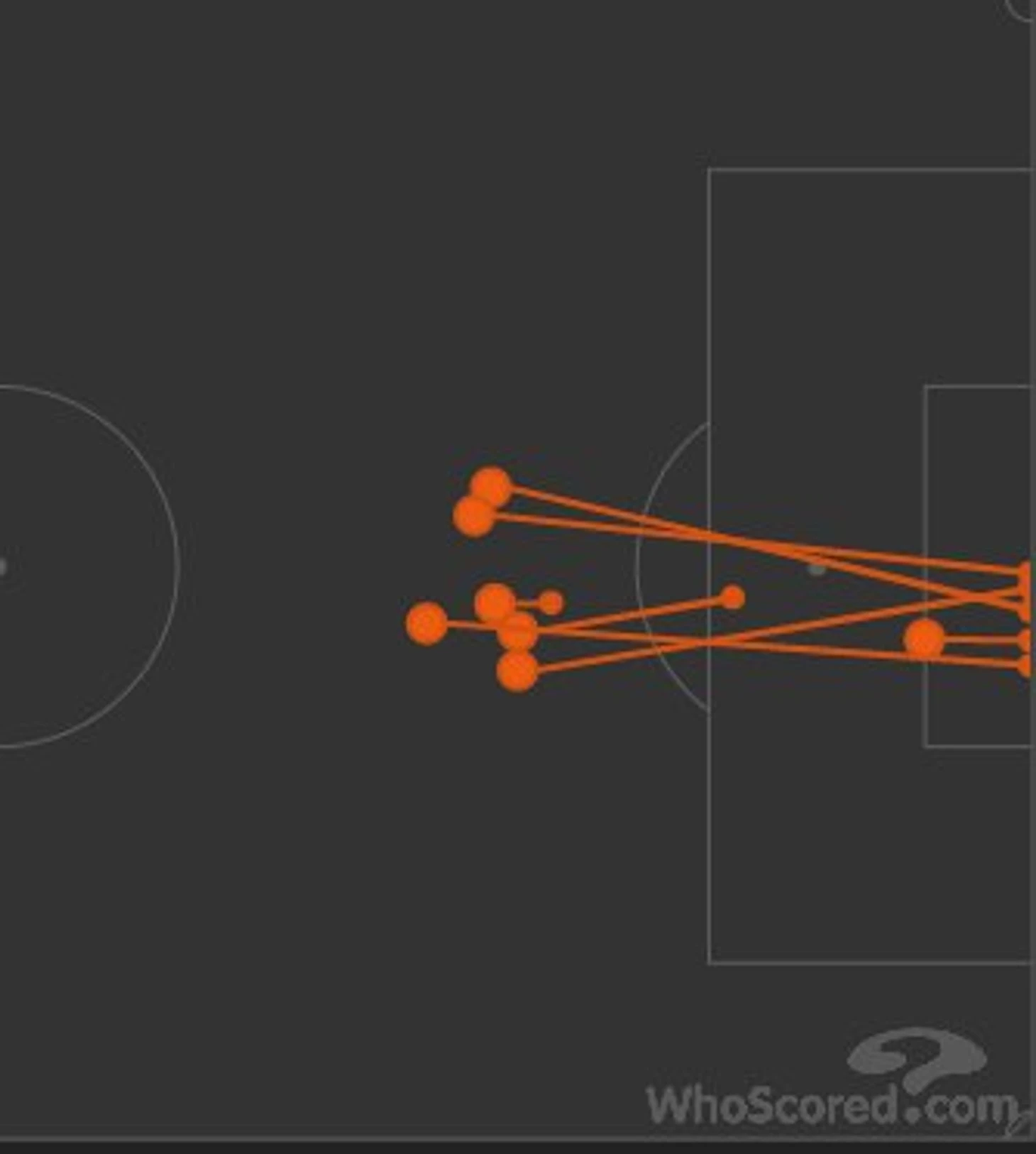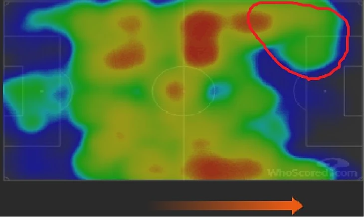 Хозяева старались насыщать левый фланг подключениями Зобнина и смещениями на фланг Ивелина Попова, иногда слева оказывался ещё и Самедов.Тепловая карта Спартака.