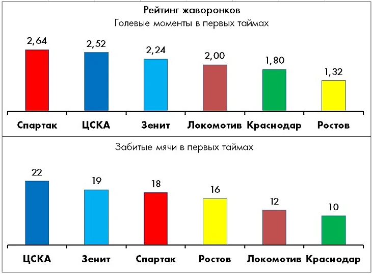 Во-первых, ЦСКА – это отряд ярко выраженных жаворонков, которые до перерыва забивают вдвое чаще, чем после.