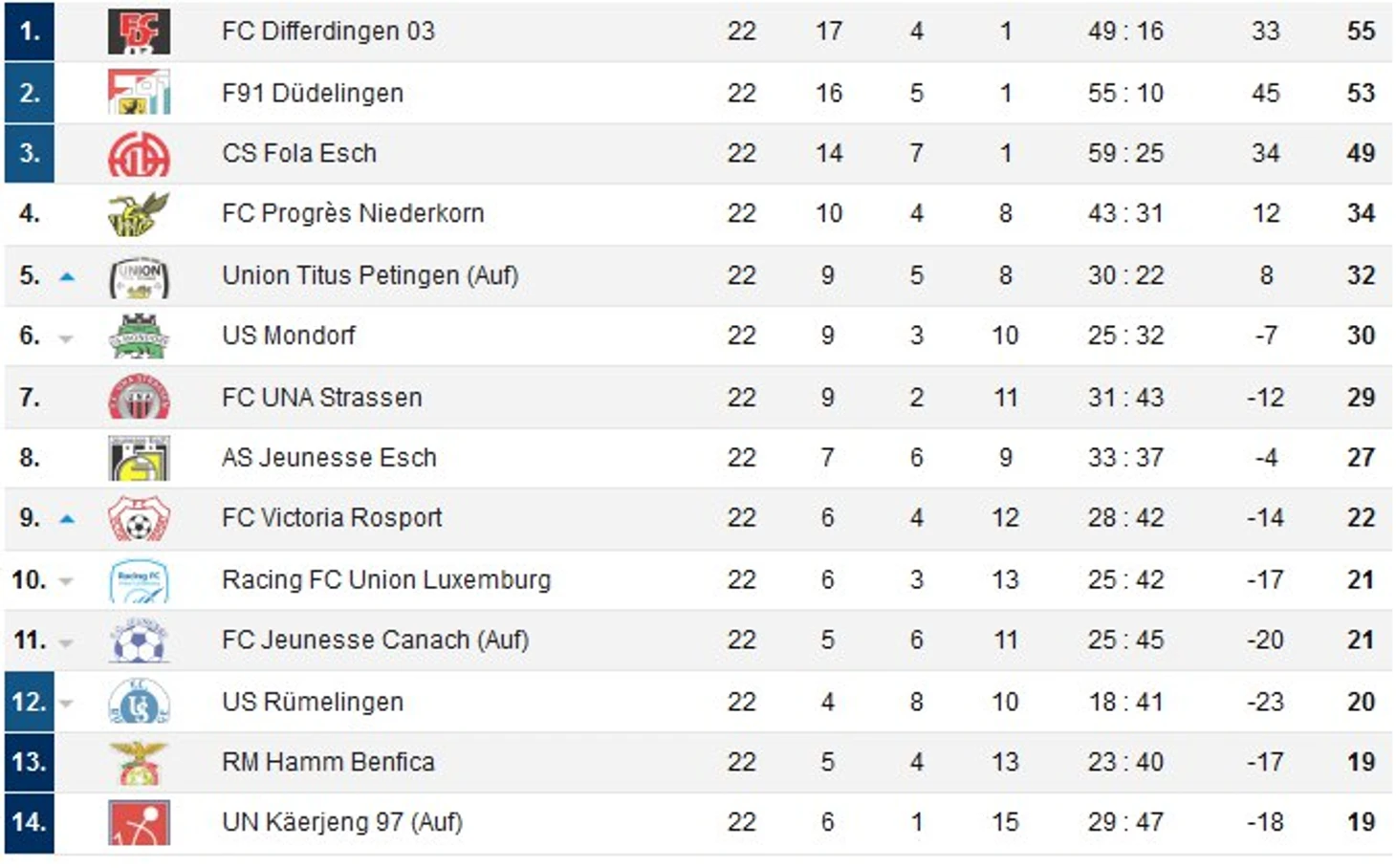 Так выглядит таблица люксембургского чемпионата прямо сейчас.
