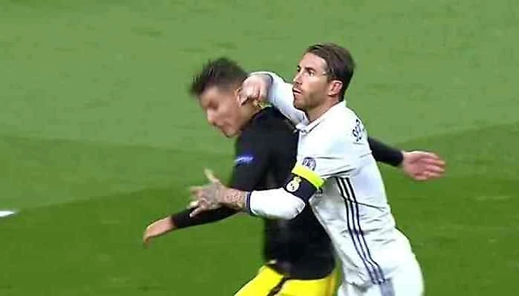 Подтверждение того, о чем я недавно писал в недавней статье, не заставило себя долго ждать. Первый полуфинал ЛЧ, матч против Атлетико. На 45-й минуте при подаче углового известный проявлениями животной агрессии Серхио Рамос врезал локтем в затылок Люка Эрнандесу. Такие вещи караются моментальным удалением и длительной дисквалификацией. Но если ты игрок Мадрида - не будет ни того, ни другого. Судья не свистнул, его помощники за воротами и на боковой тоже промолчали. Несмотря на то, что эпизод вызвал большой резонанс в масс-медиа, где был разобран во всех подробностях, УЕФА даже не стал его рассматривать. Не говоря уже о том, чтобы покарать Рамоса за грубость, переходящую все границы дозволенного. Систематическую для него, надо заметить.