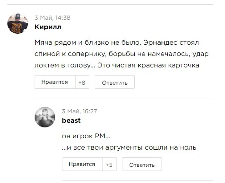 Похлопал арбитру – 3 матча дисквалификации. Шел убивать соперника – 1 матч дисквалификации.