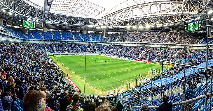 Вообще, я был до крайности разочарован походом на новый стадион. 25 минут стоял в очереди, чтобы попасть внутрь! Меры безопасности? Так террористу ещё проще - подошёл к очередям и бахнул в толпе. Полчаса в очереди за едой, которая к тому же и закончилась прямо перед носом. Отсутствие навигации как таковой, если бы не стюарды, я бы ещё минут 10 искал свой сектор. Ну, и в подтрибунных помещениях стадион выглядит, как подсобка ТК средней руки.