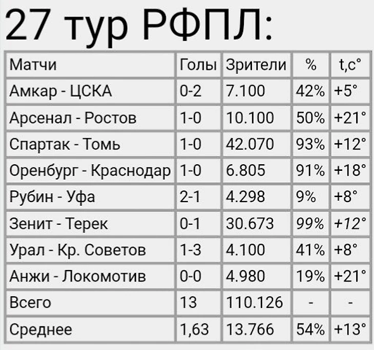 Спартак - Томь. Матч посетили 42 070 зрителей