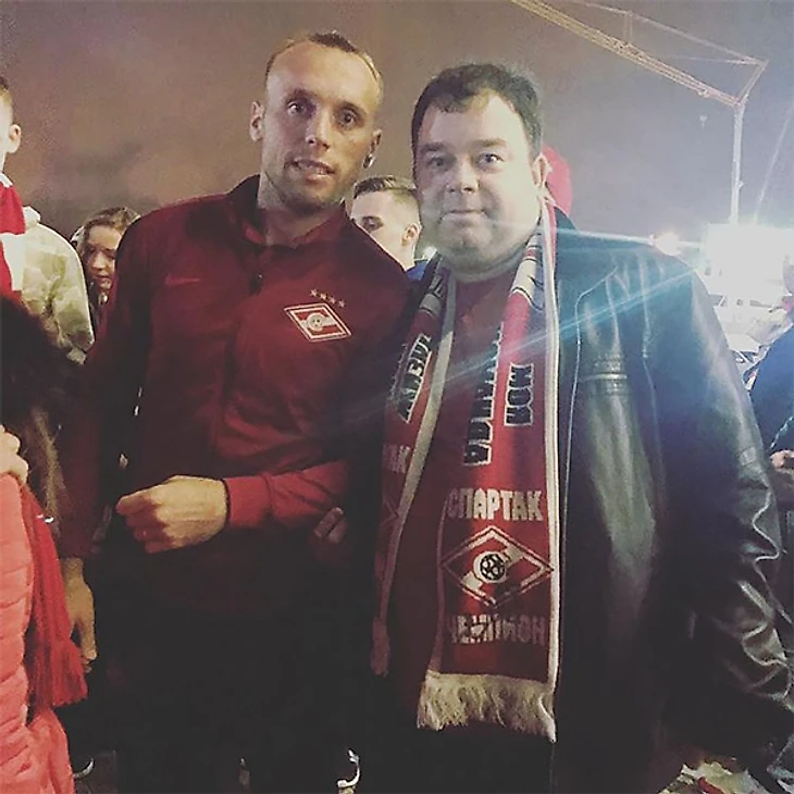 Глушаков празднует чемпионство с болельщиками «Спартака»