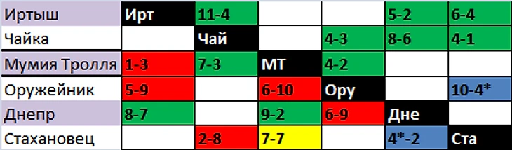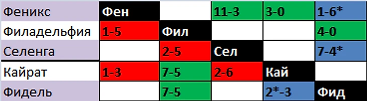 По 9 очков набрали Филадельфия, Селенга и Кайрат. Пришлось считать разницу мячей и ...4-ми остались алма-атинцы...