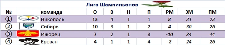 В итоге Никополь финишировал первым, опередив на 3 балла Сибирь, которая на 3 балла опередила Ижорец, который на 3 балла опередил Ереван.
