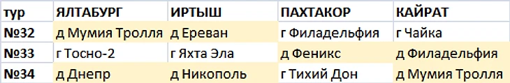 Календарь оставшихся матчей с участием 4-х лидеров
