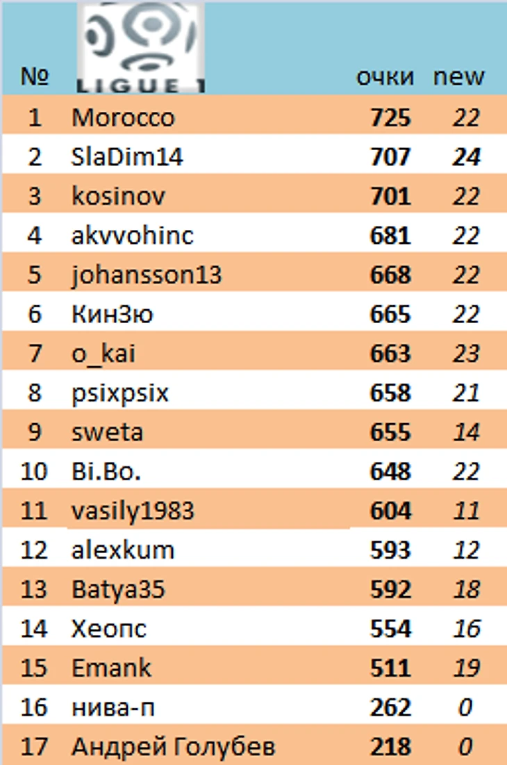 И во Франции первым на финиш пришел SlaDim14 (24 очка)!