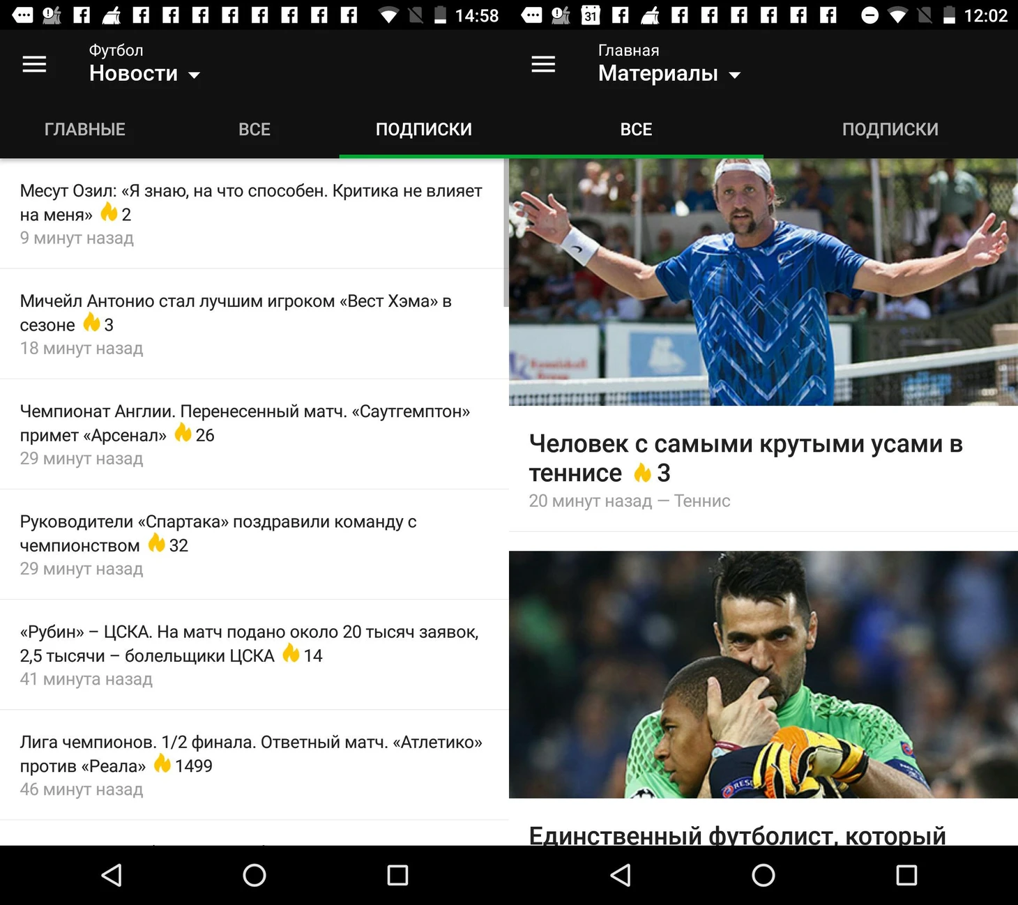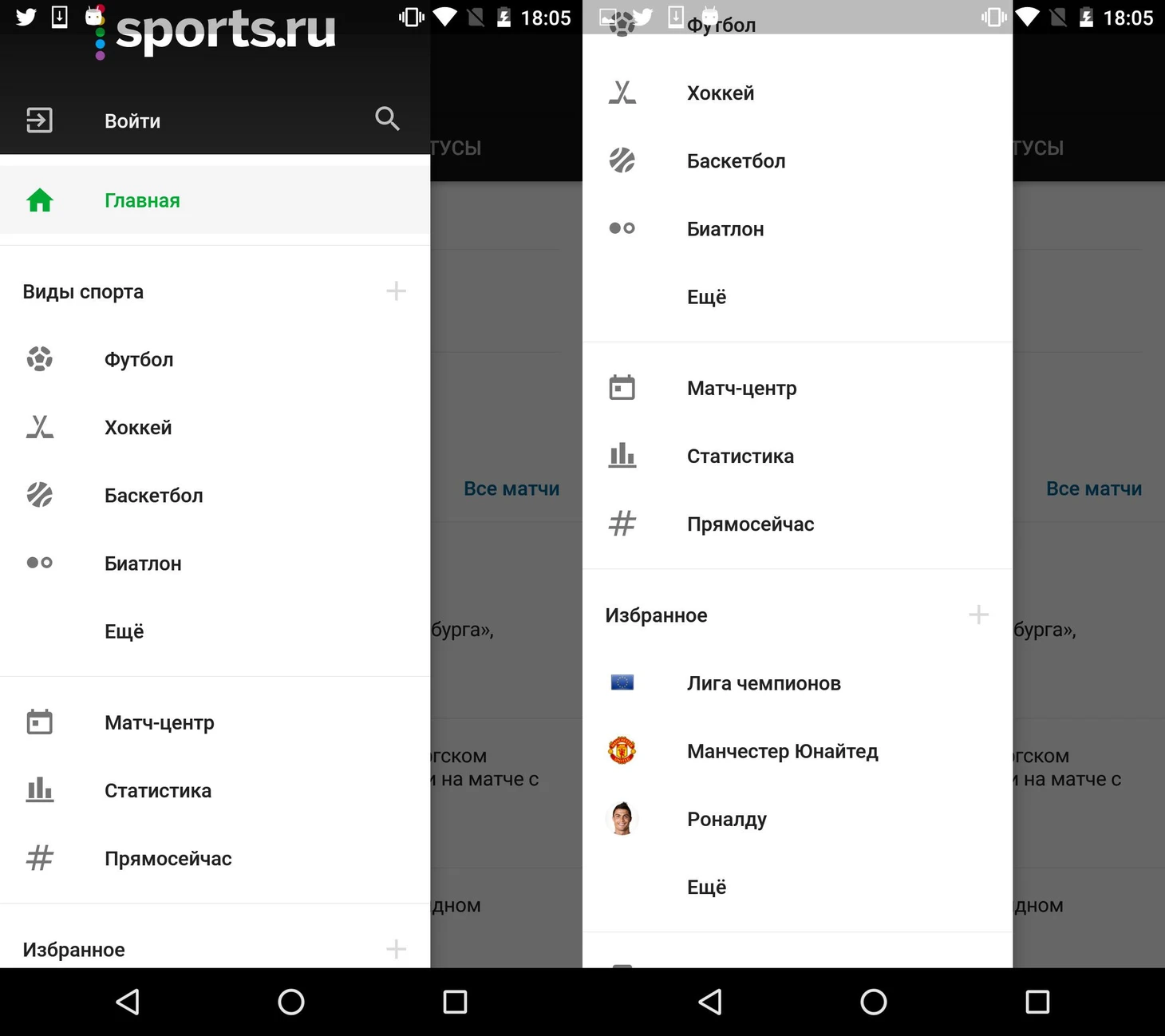 С помощью кнопки «Еще» или «+» можно добавлять или удалять различные виды спорта в вашем персональном меню. Для каждой дисциплины теперь есть своя лента контента.