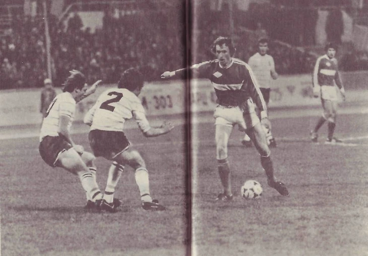 Гроссмейстер паса и один из главных Кудесников Советского Футбола Ю.ГАВРИЛОВ экзаменует и не оставляет ни МАЛЕЙШИХ ШАНСОВ! недавнему Обладателю Кубка Чемпионов (82 г.) - английской АСТОН ВИЛЛЕ!; забив в этом матче в ворота недавнего Европейского Короля ДВА Мяча, Ю.ГАВРИЛОВ во многом и заложил фундамент последующей исторической победе Спартаковцев в Бирмингеме!..