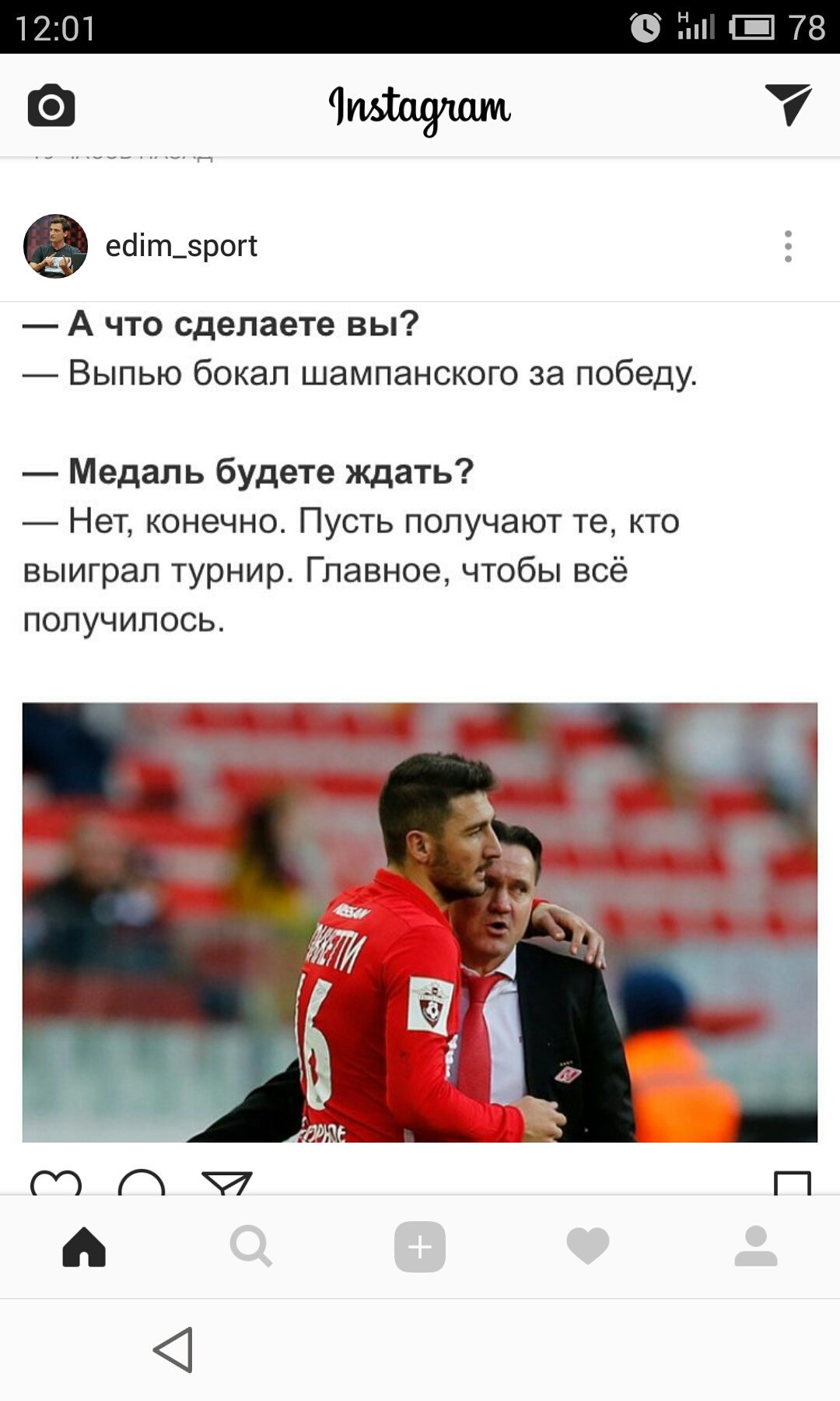 Настоящий тренер несколько дней назад праздновал историческое чемпионство «Спартака» на теплоходе. Фотка этого красавца украсит обложку июньского номера журнала Esquire. Фейковый спец прошлой весной угодил в историю: со стаканчиком в руке попал на фото в раздевалке любимого «Арсенала», когда туляки победили «Спартак-2» и досрочно оформили возвращение в РФПЛ.