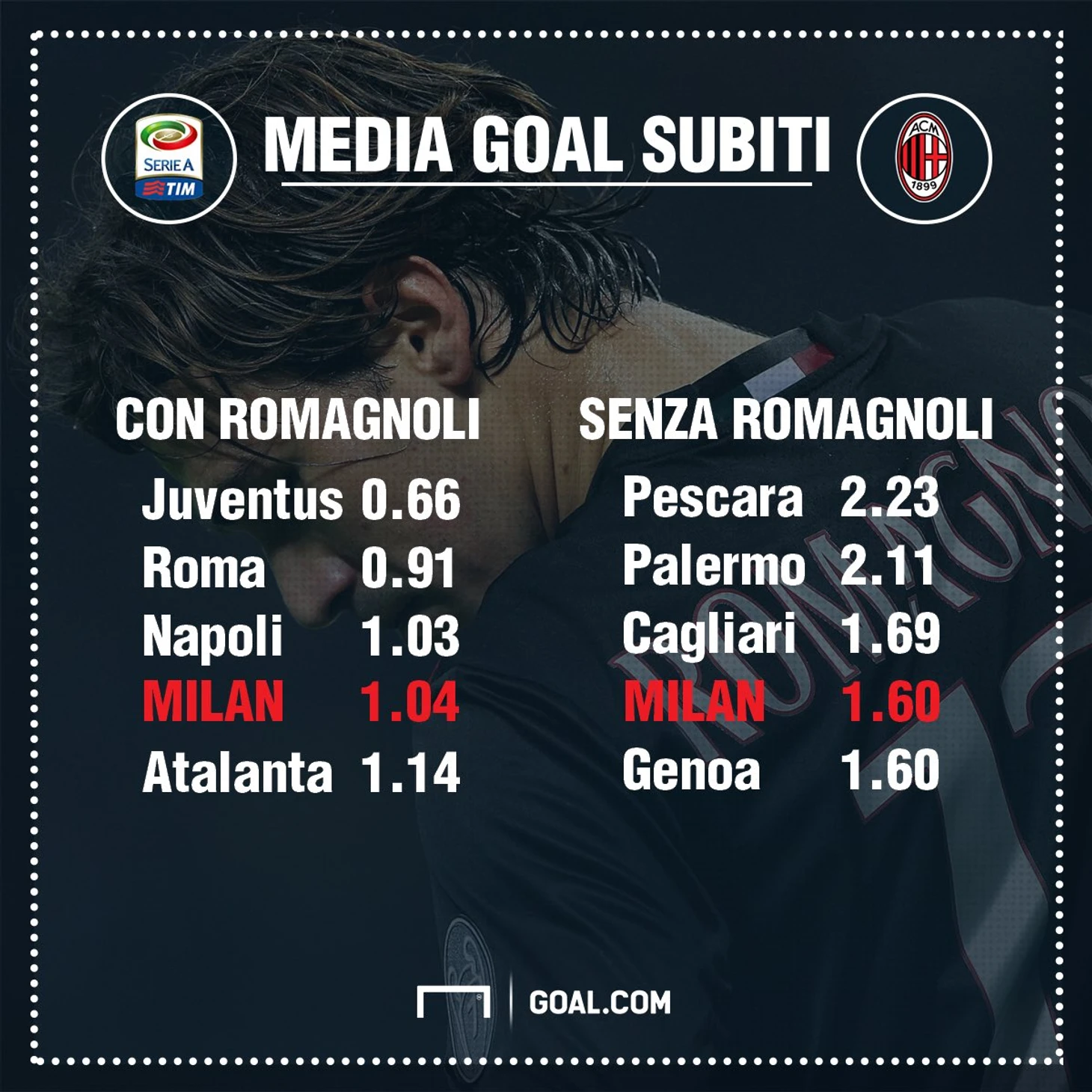 ● Инфографика: статистика встреч «Милана» с и без Романьоли в составе в этом сезоне