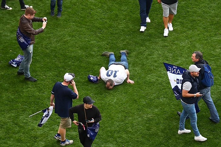 В какой-то момент болельщики не выдержали и хлынули на поле