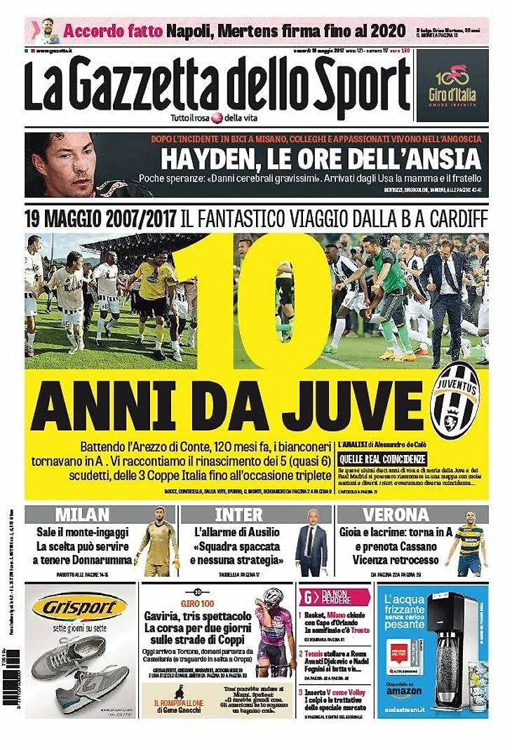 «10 лет «Юве». Заголовки Gazzetta, TuttoSport и Corriere за 19 мая