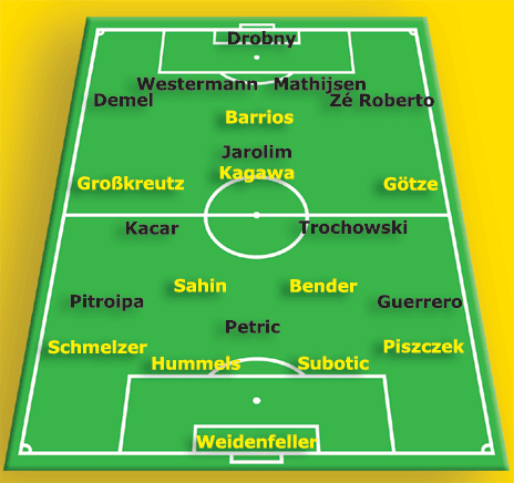 Что касается других интересных кадровых новостей, то и Тамаш Хайнал на пути обретения силы и уже в пятницу, возможно, сыграет за вторую команду «Боруссии» для укрепления и набора кондиций. Тем более, что при такой конкуренции в полузащите венгру просто не найдется места даже в заявке. Но в целом, даже при вопросах у Гросскройтца и у Барриоса, нельзя говорить, что у нас ослаблен состав, даже если те не сыграют. Наша команда тем и славна в этом сезоне, что работает принцип взаимозаменяемости почти на всех позициях на поле. Про Овомойелу, по крайней мере, сейчас мало, кто вспоминает. А Пищек играет все лучше и лучше. Что еще может помочь нашим игрокам это мотивация продолжать развивать успех. А у Гросскройтца, Шмельцера, Гётце и Хуммельса она вообще особенная: Иоахим Лёв номинировал сей квартет на товарищеский матч со Швецией. Так что надеемся, что принцип «один за всех и все за одного» будет работать и сегодня.