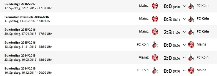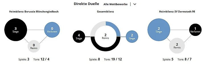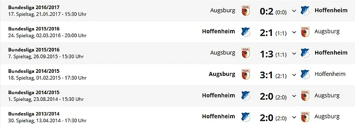 *Gesamtbilanz - общий баланс, heimbilanz - баланс игр дома, remis - ничьи, siege - победы, tore - голы