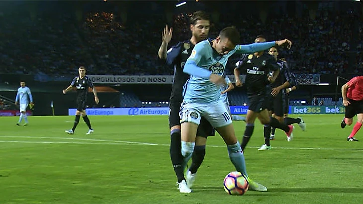 На 62-й минуте Рамос сбивает Аспаса в своей штрафной. Пенальти в ворота Мадрида? Черта лысого! Желтая Аспасу за симуляцию (интересно, чего именно?), оказавшаяся повторной. Для Рамоса толкать и пинать соперника всегда было в порядке вещей, и он совершенно уверен, что в футбол так играть можно. Арбитр встречи Мартинес Мунуэра придерживался того же мнения. В итоге, лидер Сельты был удален за 2 совершенно липовые желтые в моментах, когда наказание должны были получать игроки Реала. Театр абсурда - скажет кто-то. Но пора привыкнуть, что для сливочных действуют особые правила, а каждый эпизод может быть трактован вверх тормашками и вывернут в их пользу.