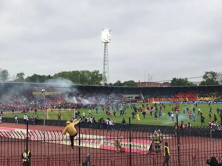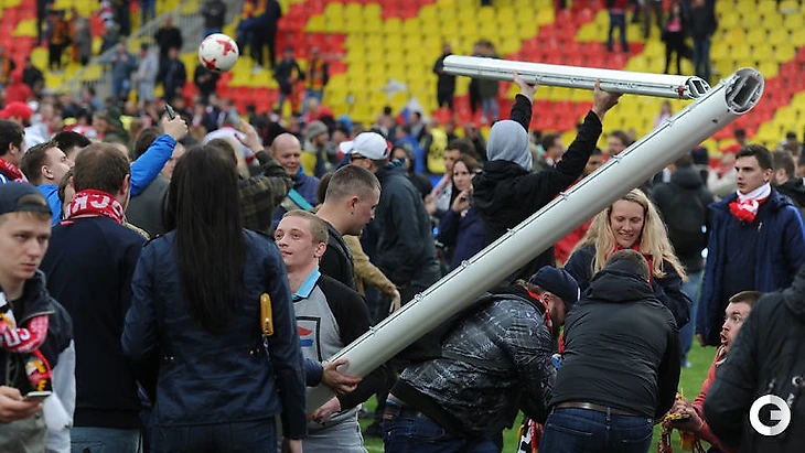 После того, как тульский «Арсенал» одержал крупную победу над уже действующими чемпионами России, «Спартаком», 3:0, болельщики красно-белых выбежали на поле Центрального стадиона и даже умудрились сломать ворота.