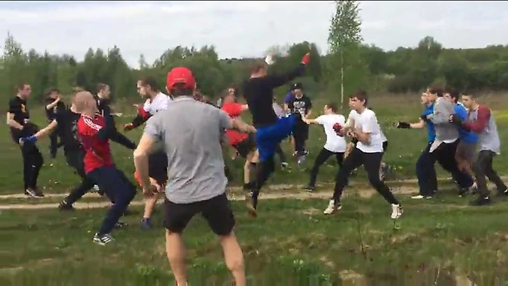 В это же время фанаты «Спартака» устроили между собой драку за места.