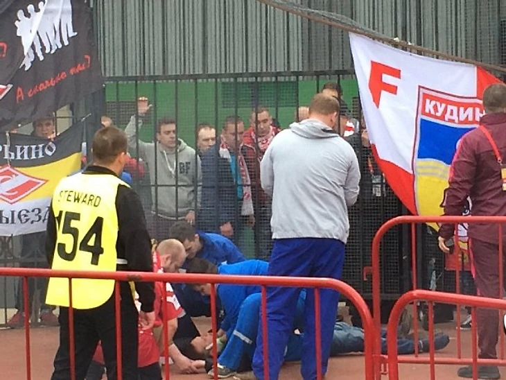 Во время игры часть болельщиков «Спартака» попыталась перебраться из одного сектора в другой. Под напором ограждения не выдержали.Во время падения ограждений на них было около 10 человек. Как минимум один серьезно пострадал – в течение нескольких минут он оставался без сознания.