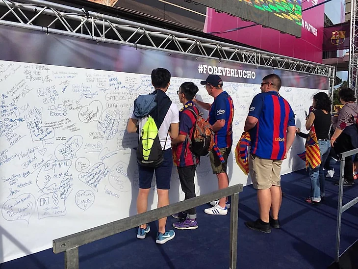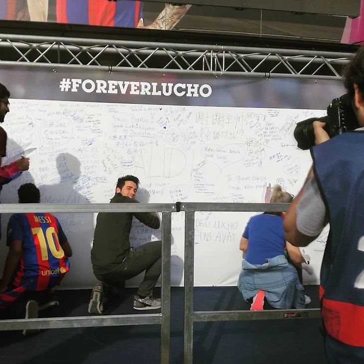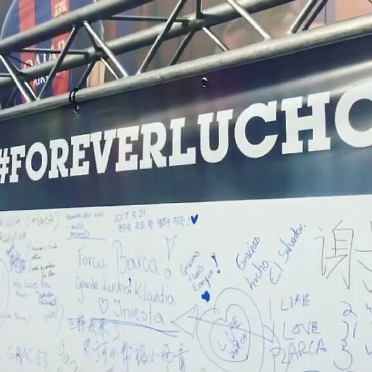 На «Камп Ноу» появился стенд с хештегом #ForeverLucho, где все болельщики могут оставить свои благодарности, пожелания и поздравления главному тренеру команды, который покинет свой пост по окончании сезона.