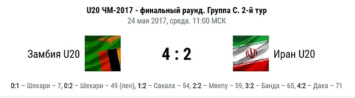 Гол форварда «Спартака-2» Сакалы помог Замбии обыграть Иран на молодежном ЧМ