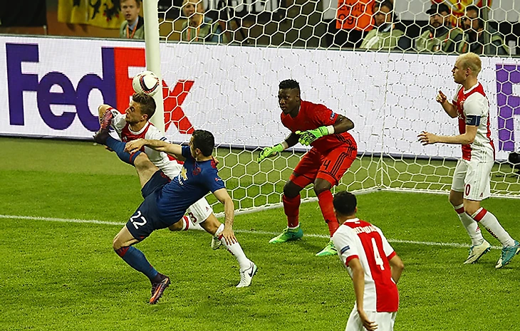 Генрих Мхитарян забил удивительный гол в финале Лиги Европы с «Аяксом». В начале второго тайма игрок «МЮ» быстрее всех сориентировался в штрафной после подачи углового и акробатическим ударом через себя переправил мяч в ворота. При 2:0 шансов у «Аякса» не осталось от слова совсем.
