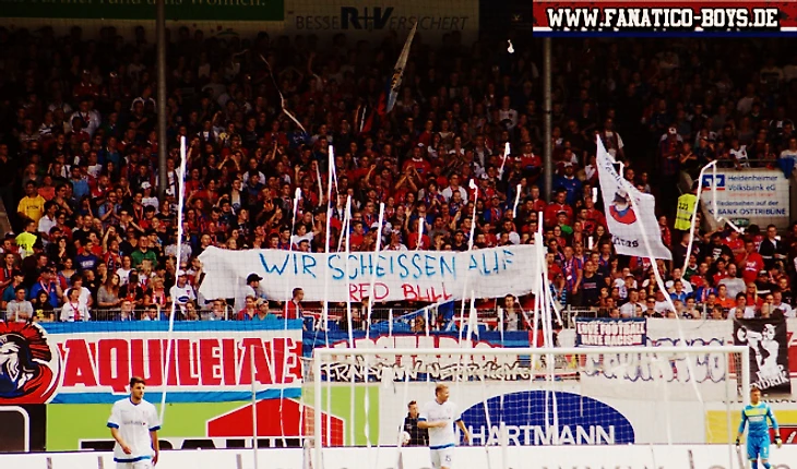 Фанаты "Хайденхайма" с посланием: "Хyй мы клали на Ред Булл":