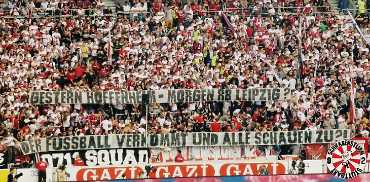 Ультрас "Штутгарта" с баннером: "Вчера "Хоффенхайм" - сегодня "РБ Лейпциг"? Футбол умирает, а все просто так смотрят на это?".