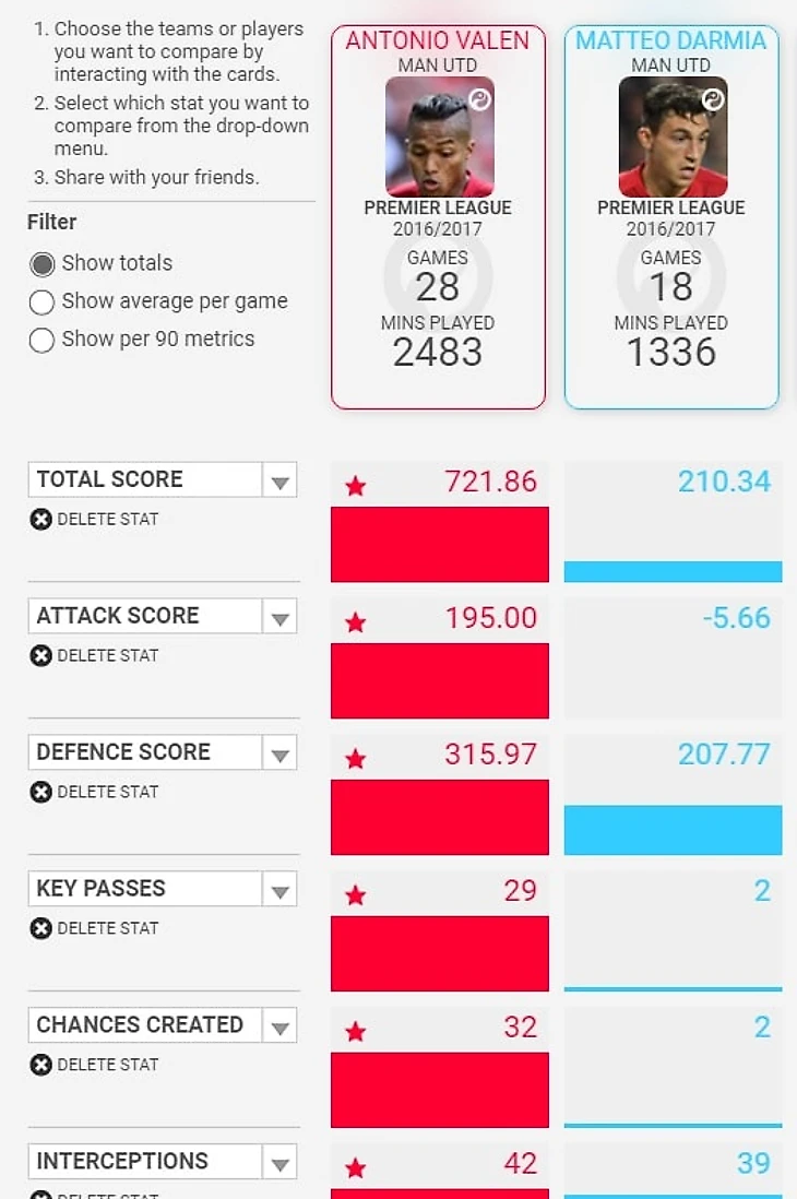 Аргентинец практически по всем оборонительным показателям проигрывает Эрику Байи. Но как же Рохо прибавил в сравнении с сами собой сезона 2015/16!