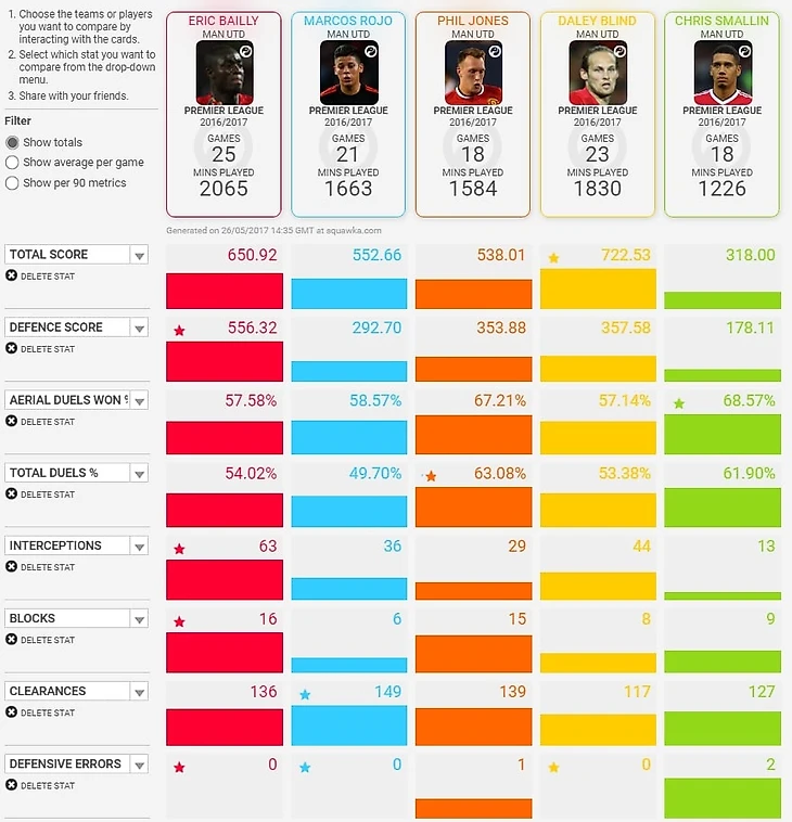 В этом сезоне Блинд вновь приступил к своим обязанностям на левом фланге обороны, но травмы Джонса, Смоллинга и Рохо вынудили Моуринью снова вернуться к Блинду в центре обороны. По статистике Дейли уж точно не является самым слабым в квинтете Байи – Джонс – Смоллинг – Рохо – Блинд.