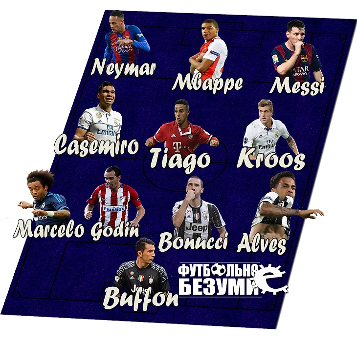 В команде мечты представлены лучшие игроки сезона 2016\17 в совокупности всех турниров ( Лига Чемпионов, национальный Чемпионат, кубок) по версии авторов блога "Футбольное Безумие".