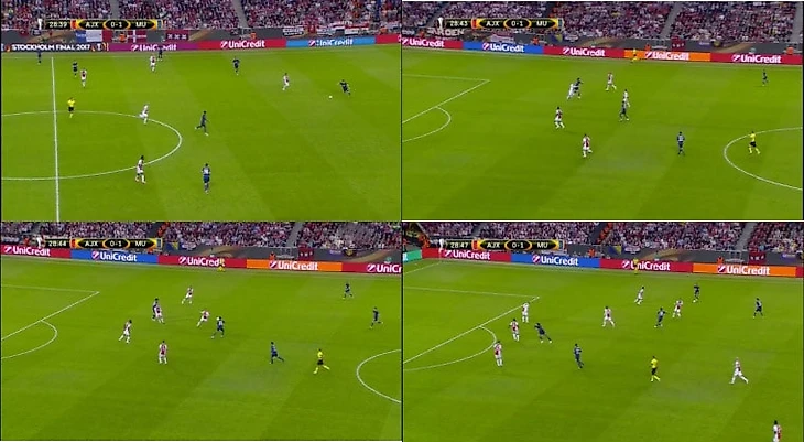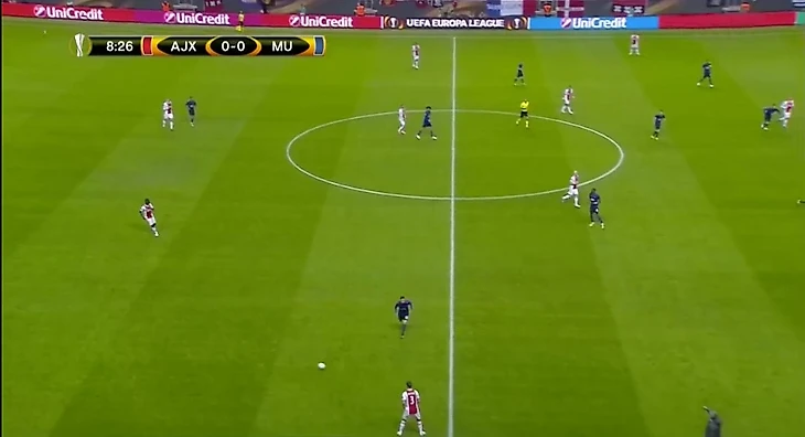 Без связи между Санчесом и Траоре у «Аякса» не остается других возможностей для передач вперед. Они вынуждены очень медленно перемещать мяч между ближайшими игроками, не способными «стряхнуть» опекунов «Юнайтед». О многом говорит тот факт, что центрфорвард Дольберг впервые коснулся мяча только после гола Погба.