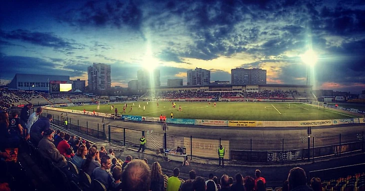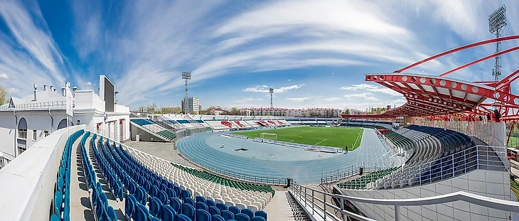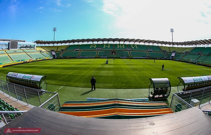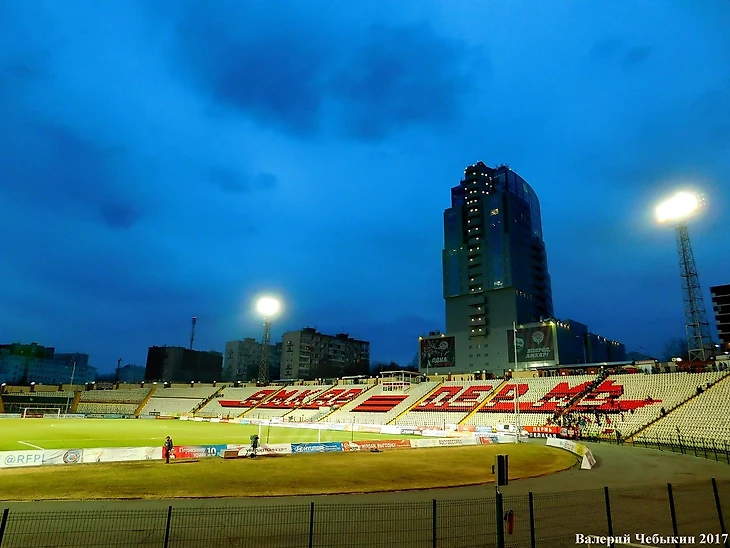 Уфа. Cтадион Нефтяник, вместимость 15 132 зрителя.