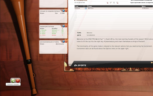 А тут вот предлагают положить разные предметы к себе на стол. Конечно, как же менеджер сборной может обойтись без львенка на столе, вдруг спать захочет, или вувузелы, как еще игроков вызывать в кабинет? А еще порадовали "выдающиеся игроки". Вот Санья аж 2 раза встретился, что так у него так сильно выдается? Еще очень не нравится, что тренерский стол вылазит за рамки экрана, постоянно что-то ненужное открывается, выпадают менюшки, брр.