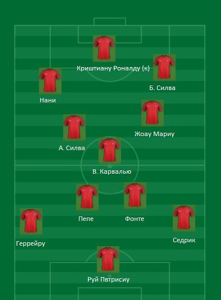 На острие выйдет, конечно же, Криштиану Роналду. Вместо героя Евро Эдера его сменщиком станет талантливый и проведший сильный, но неровный сезон Андре Силва из «Порту».