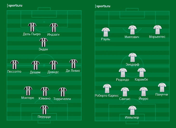 Лучший пример – самый опасный момент первого тайма, который был у Рауля. Редондо отрезал передачей Ди Ливио, Торричелли пришлось выдергиваться на Миятовича. Югослав легко ушел от итальянца и на него уже пришлось выходить Юлиано, образовалась свободная зона, куда рванул Рауль, опередивший Монтеро. «Ювентусу» повезло, что испанец не попал в ворота.