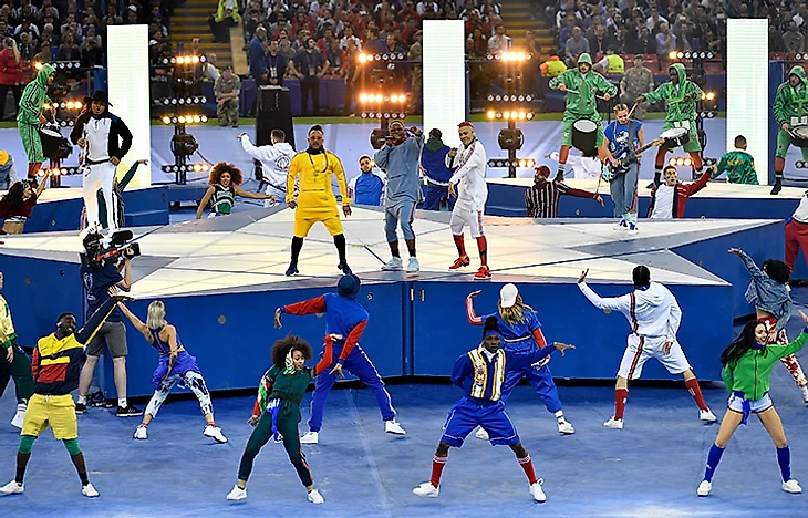 Незадолго до матча болельщиков развлекли маленьким шоу. Да, это были The Black Eyed Peas.