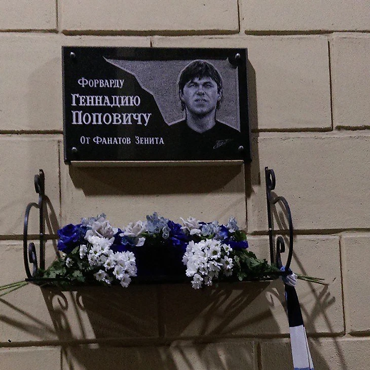 5 лет назад на стадионе "Петровский" фанаты "Зенита" открыли мемориальную доску в память форварду сине-бело-голубых Геннадию Поповичу. Открытие было приурочено ко второй годовщине смерти Геннадия.
