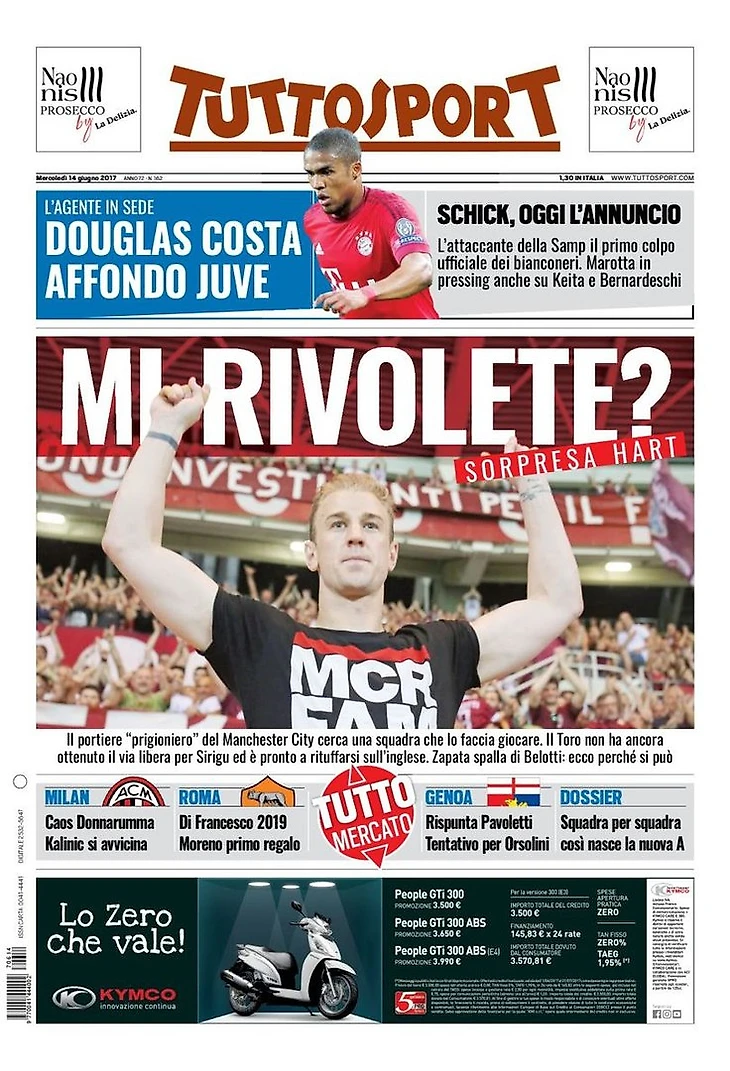 Сюрприз Харта. Вратарь-«заключённый» из «Манчестер Сити» ищет команду, в которой будет играть. «Торино» ещё не получило добро по Сиригу и готово вновь взять англичанина. Сапата в пару к Белотти: вот почему это возможно.